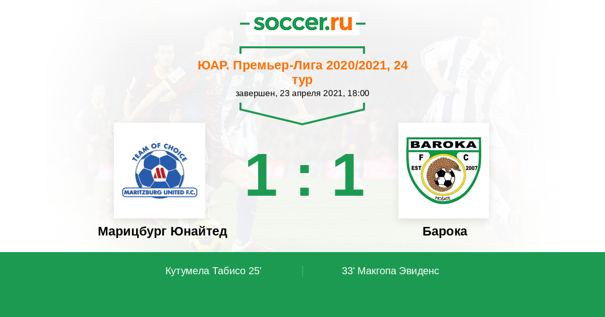 | Марицбург Юнайтед | 15:7 | 8:2 | 7:5 |