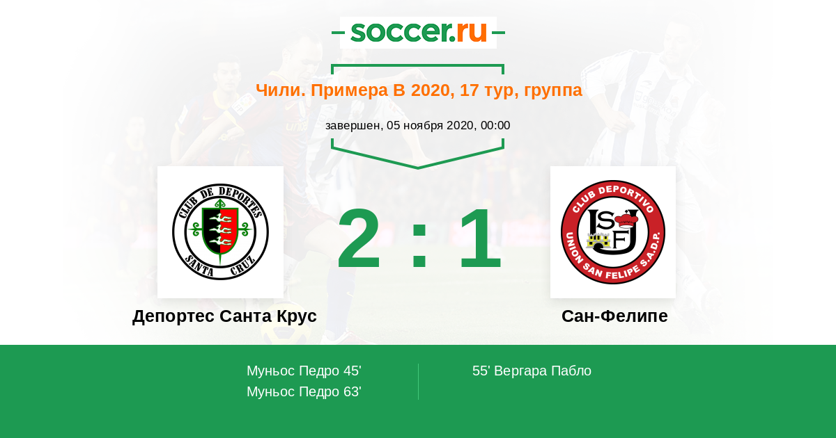 | Депортес Санта Крус | 10:14 | 7:6 | 3:8 |