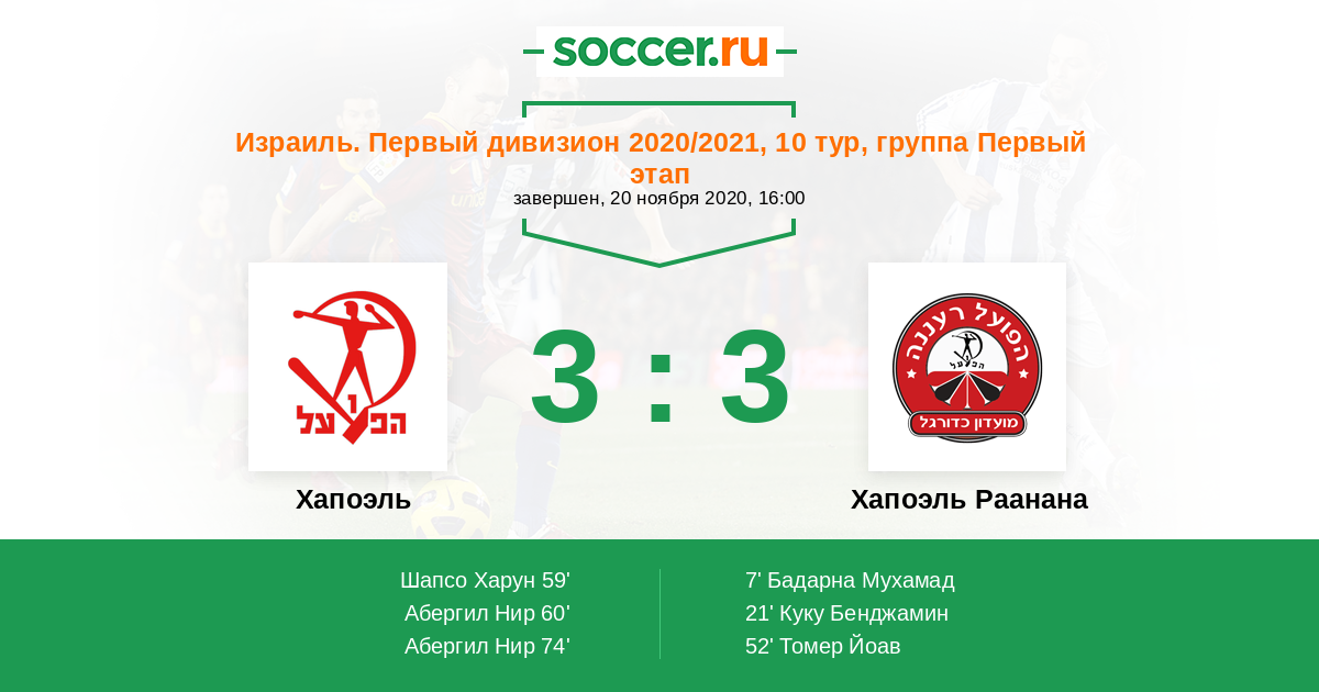 | Хапоэль Раанана | 4:2 | 4:2 | 0:0 |
