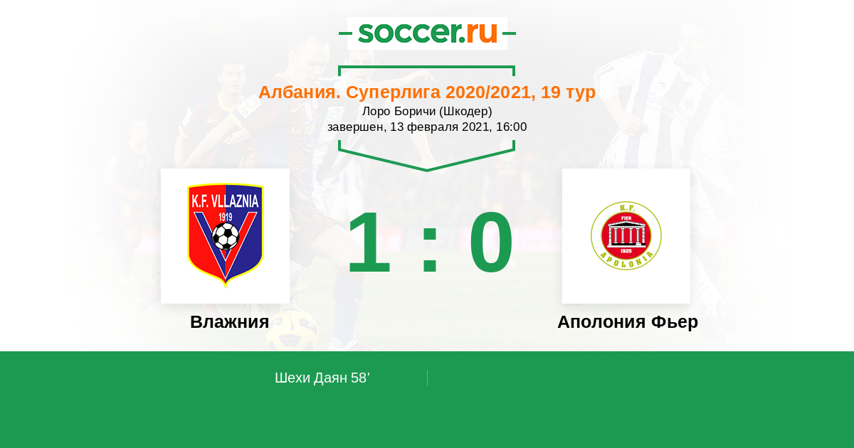 Последние 5 игр дома Влажния