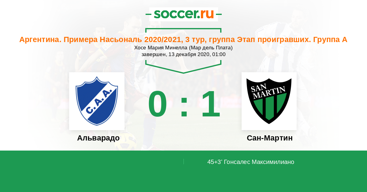 | Альварадо | 3:6 | 0:0 | 3:6 |