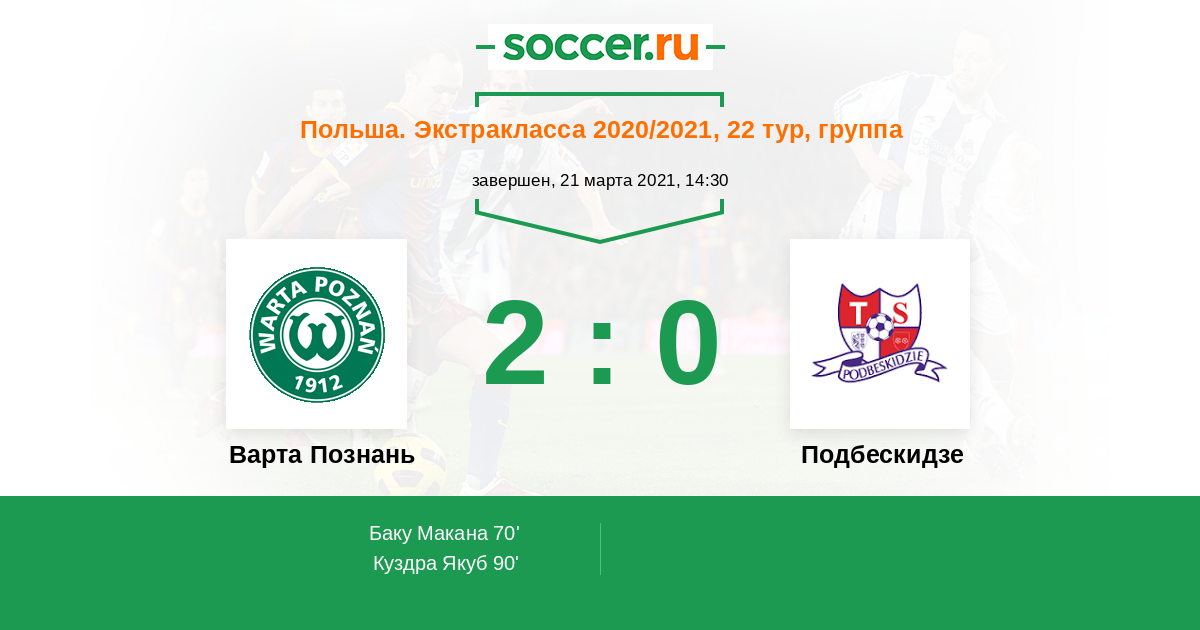 | Варта Познань | Подбескидзе | |