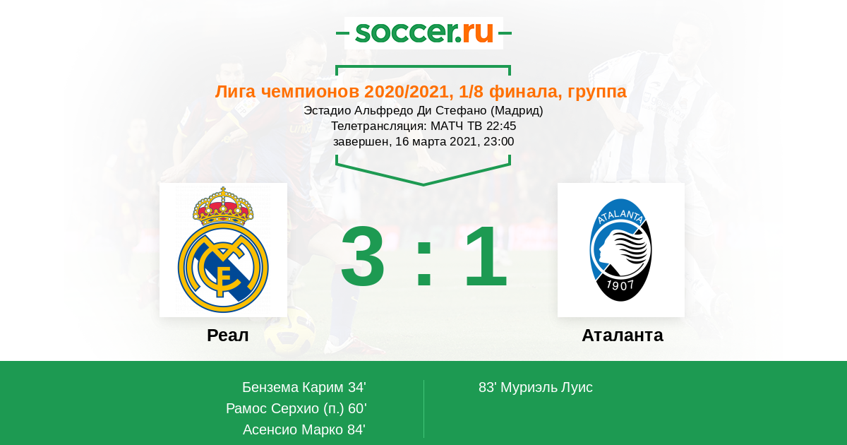 | Реал | Аталанта | |