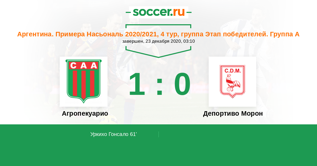 | Агропекуарио | Депортиво Морон | |