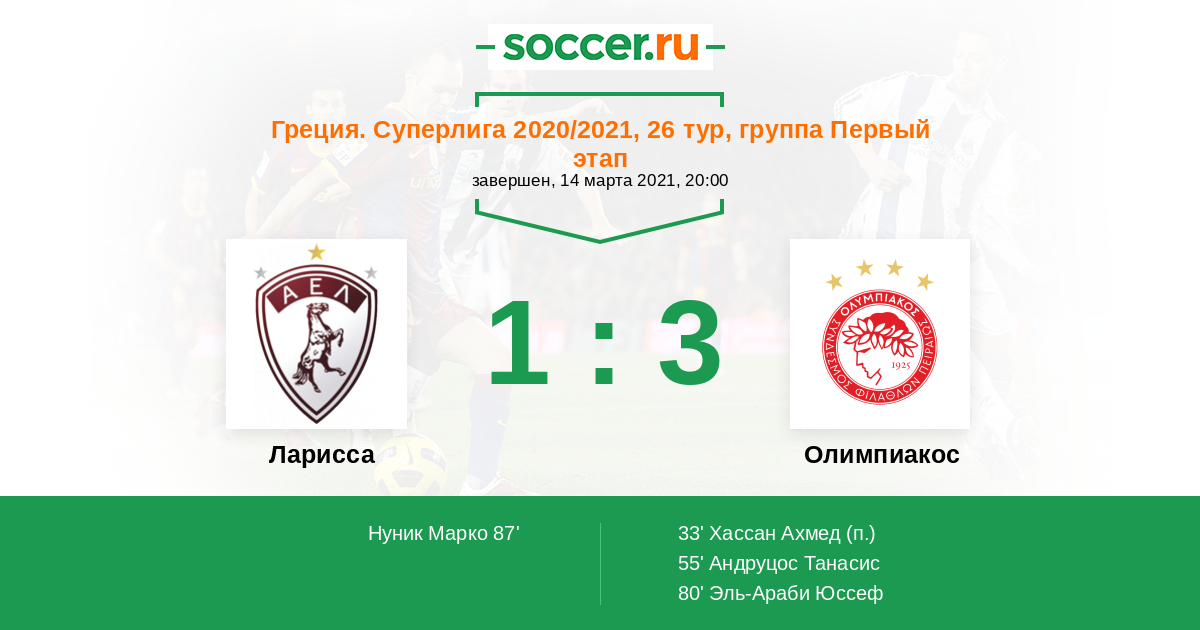 | Ларисса | 20:65 | 9:18 | 11:47 |