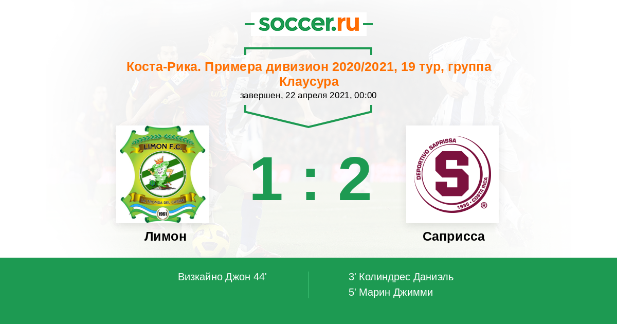 | Коста-Рика. Примера дивизион | 43 | 10 | 22 | 11 |