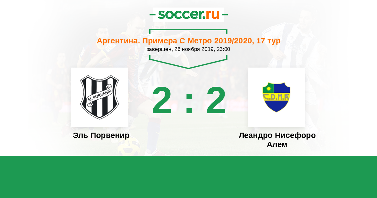 | Аргентина. Примера С Метро | 23 | 6 | 9 | 8 |
