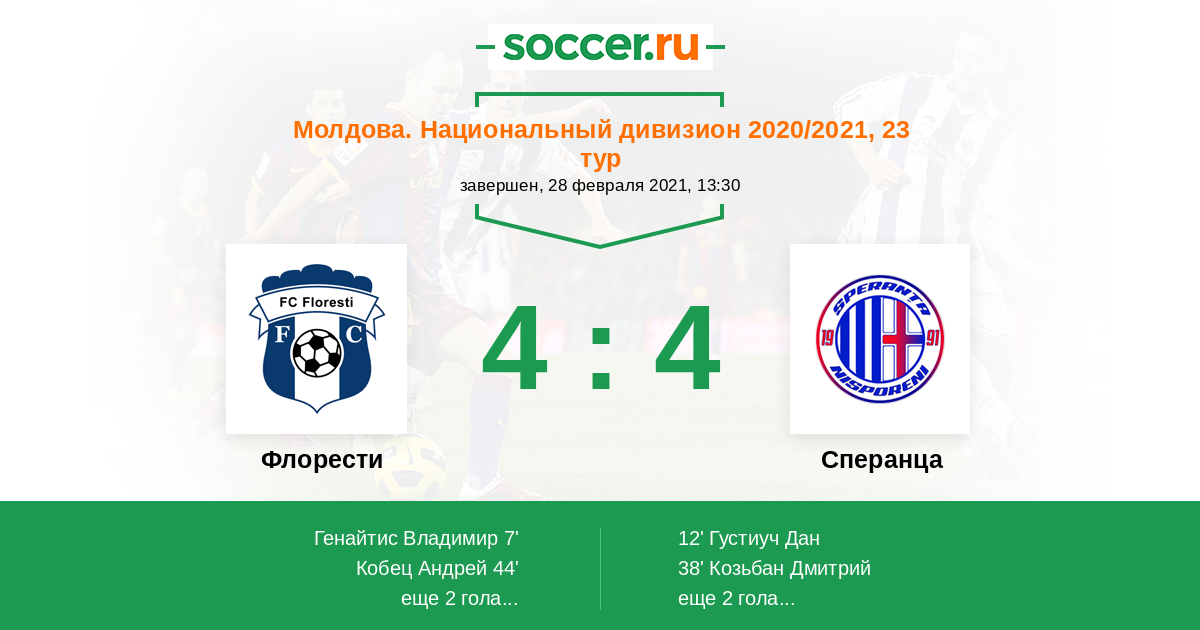 | Флорести | 4:2 | 1:1 | 3:1 |