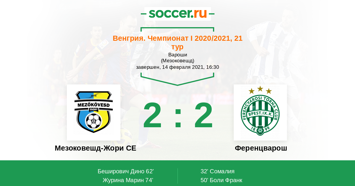 | Мезоковешд-Жори СЕ | Ференцварош | |