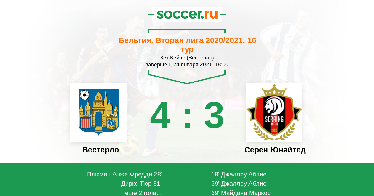 | Вестерло | 8:5 | 4:3 | 4:2 |