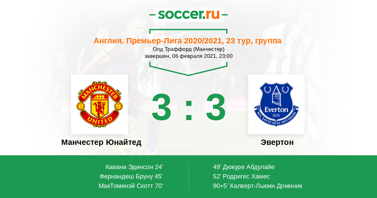 В прошлом туре АПЛ команда Карло Анчелотти отправилась в гости к «Лидсу», где удалось оформить трудовую викторию (2:1). В турнирной таблице «Эвертон» вернул себе седьмую строчку, а дистанция от зоны еврокубков сократилась до двух зачетных пунктов. Также у «ирисок» есть две игры в запасе.«Манчестер Юнайтед» прилично поднял себе настроение, одержав очень крупную победу. Теперь «красные дьяволы» попробуют развить этот успех. У команды Сульшера стабилизировалась игра в атаке, которая стабильно забивает.