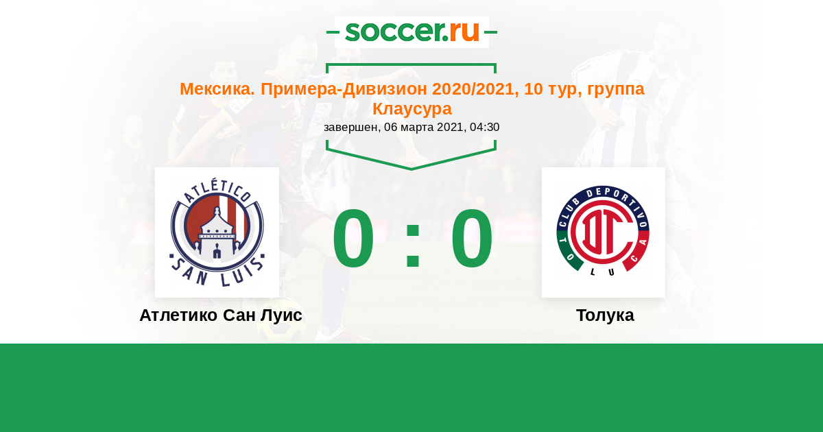 | Атлетико Сан Луис | 10:24 | 3:10 | 7:14 |