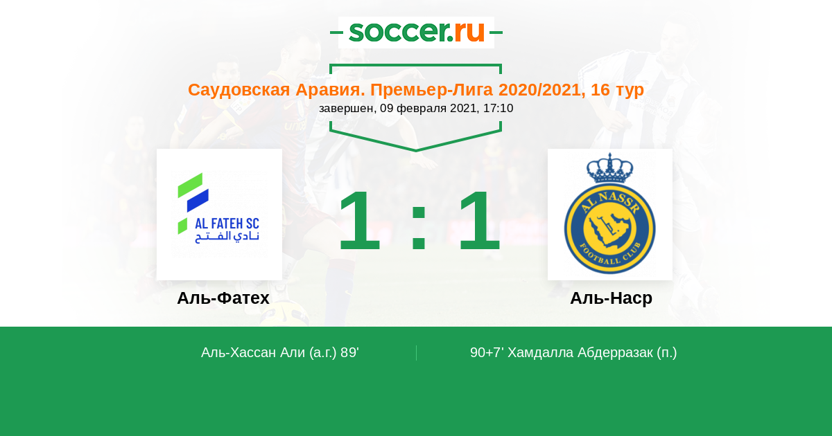| Аль-Наср | 56:24 | 37:12 | 19:12 |