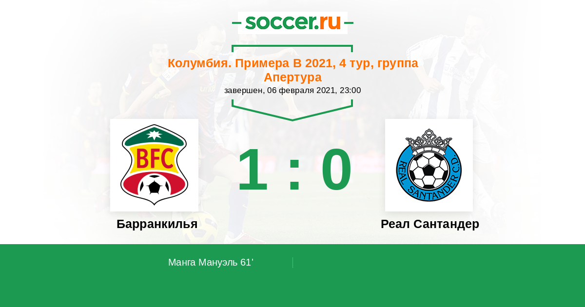 | Реал Сантандер | 44:41 | 26:13 | 18:28 |