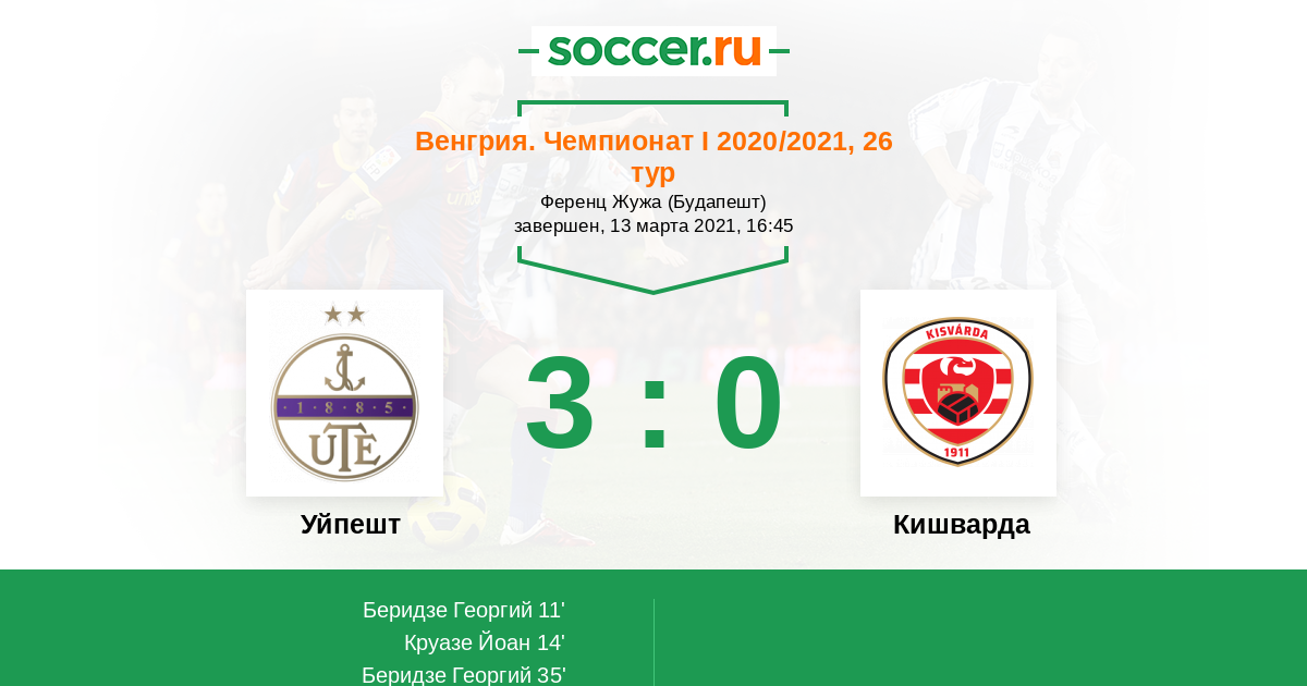 | Уйпешт | 23:30 | 14:8 | 9:22 |
