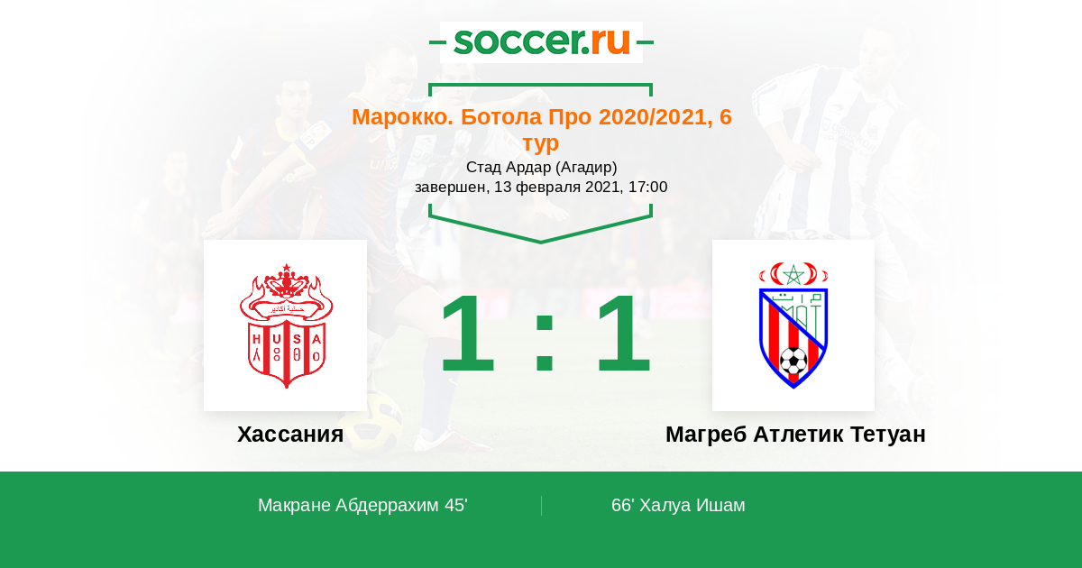 | Магреб Атлетик Тетуан | 36:40 | 18:23 | 18:17 |