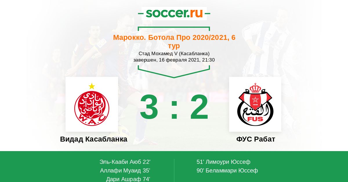 | ФУС Рабат | 36:41 | 18:20 | 18:21 |
