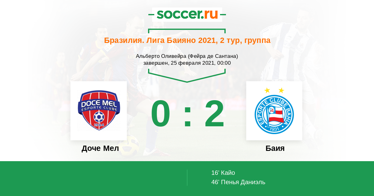 | Баия | 13:1 | 7:1 | 6:0 |
