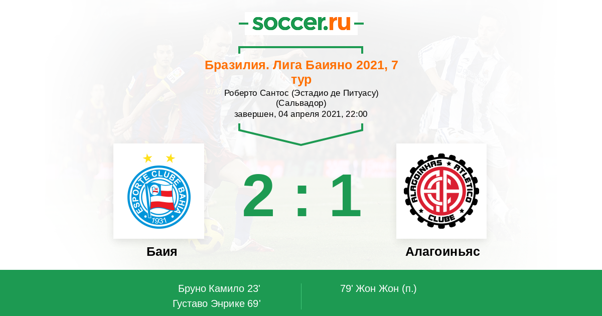 | Бразилия. Лига Баияно | 28 | 16 | 4 | 8 |