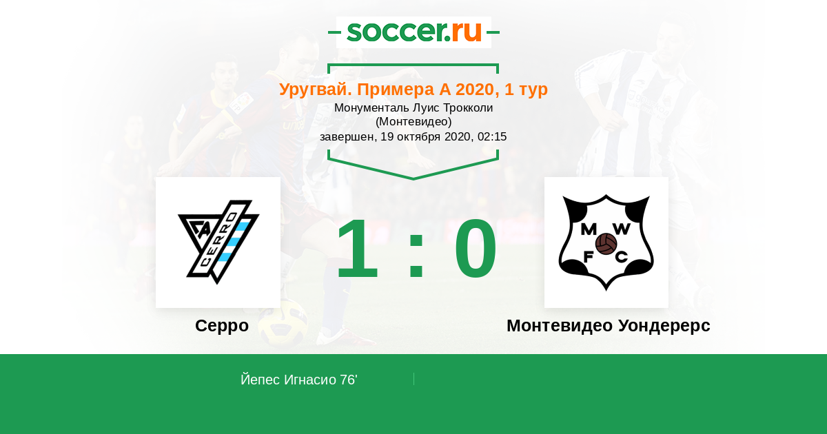 | Монтевидео Уондерерс | 58:59 | 30:22 | 28:37 |