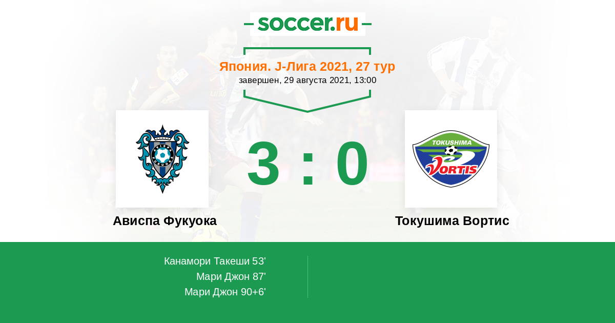 | Ависпа Фукуока | 44:31 | 19:10 | 25:21 |