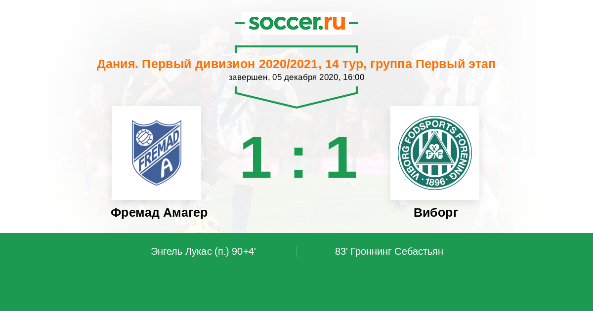 | Фремад Амагер | 1:3 | 0:0 | 1:3 |