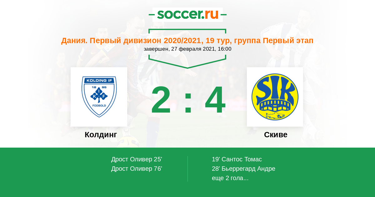 | Скиве | 12:15 | 4:4 | 8:11 |