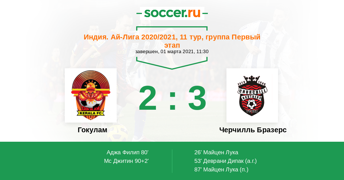 | Гокулам | Черчилль Бразерс | |