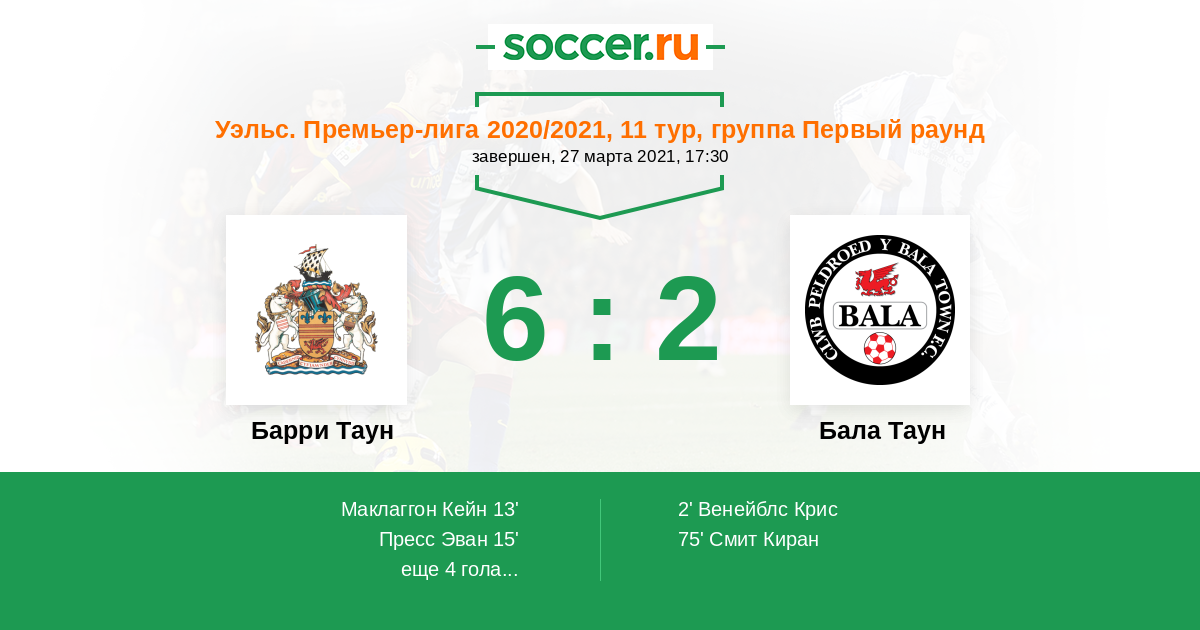 | Уэльс. Премьер-Лига | 19 | 5 | 8 | 6 |
