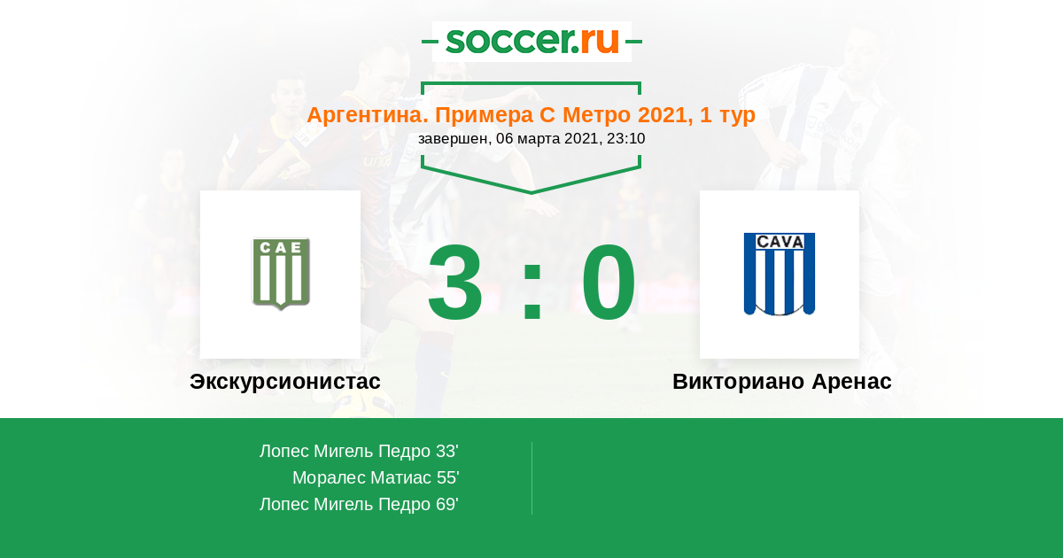 | Аргентина. Примера С Метро | 9 | 5 | 0 | 4 |