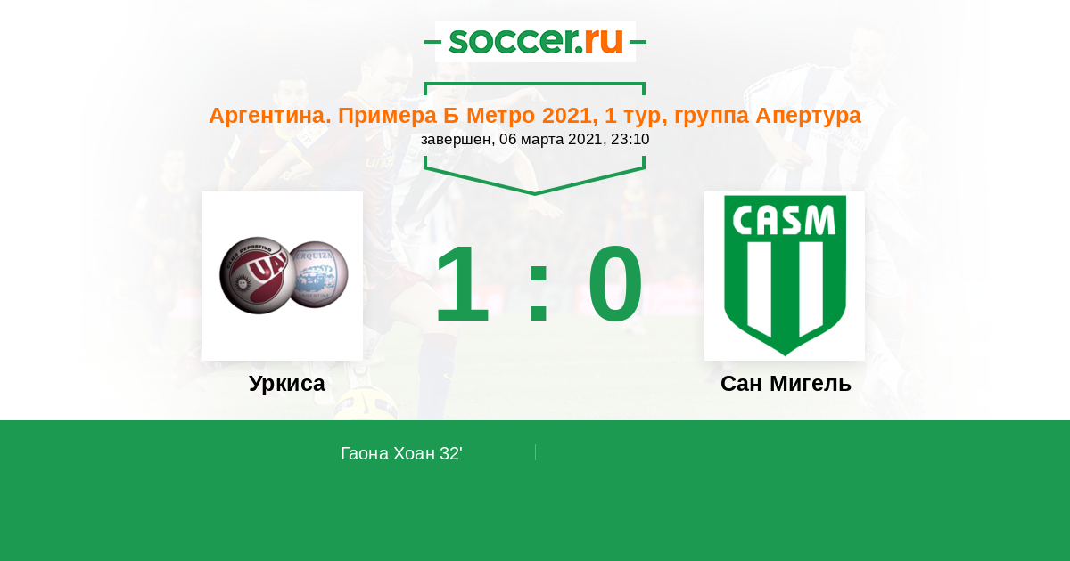 | Аргентина. Примера С Метро | 6 | 4 | 2 | 0 |
