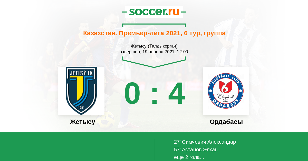 | Ордабасы | 58:41 | 32:17 | 26:24 |