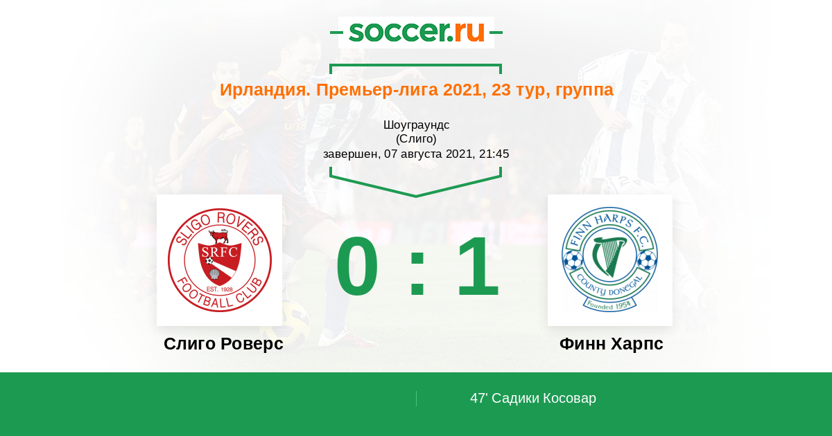 | Слиго Роверс | 60:55 | 29:22 | 31:33 |