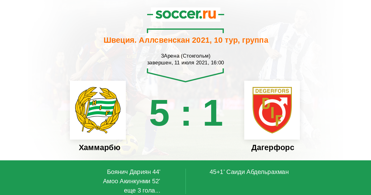 | Хаммарбю | 44:25 | 23:10 | 21:15 |