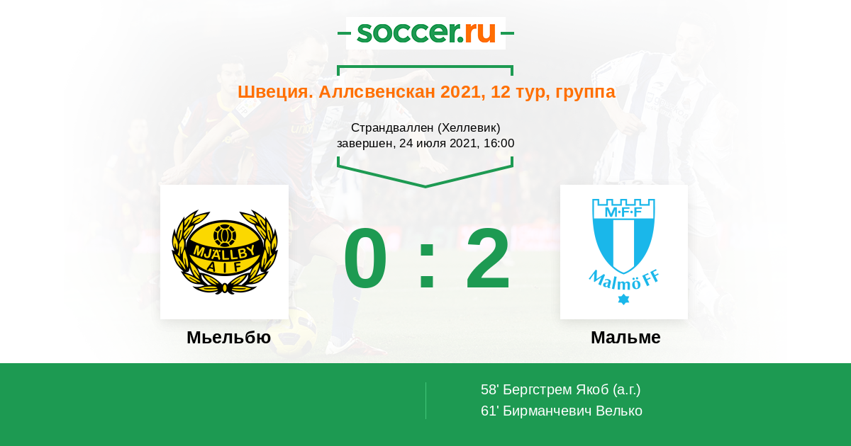 | Мальме | 34:33 | 19:10 | 15:23 |