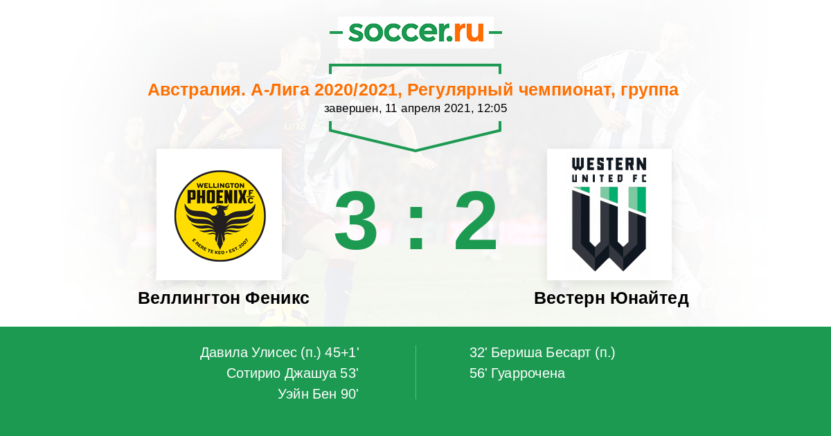 | Веллингтон Феникс | Вестерн Юнайтед | |