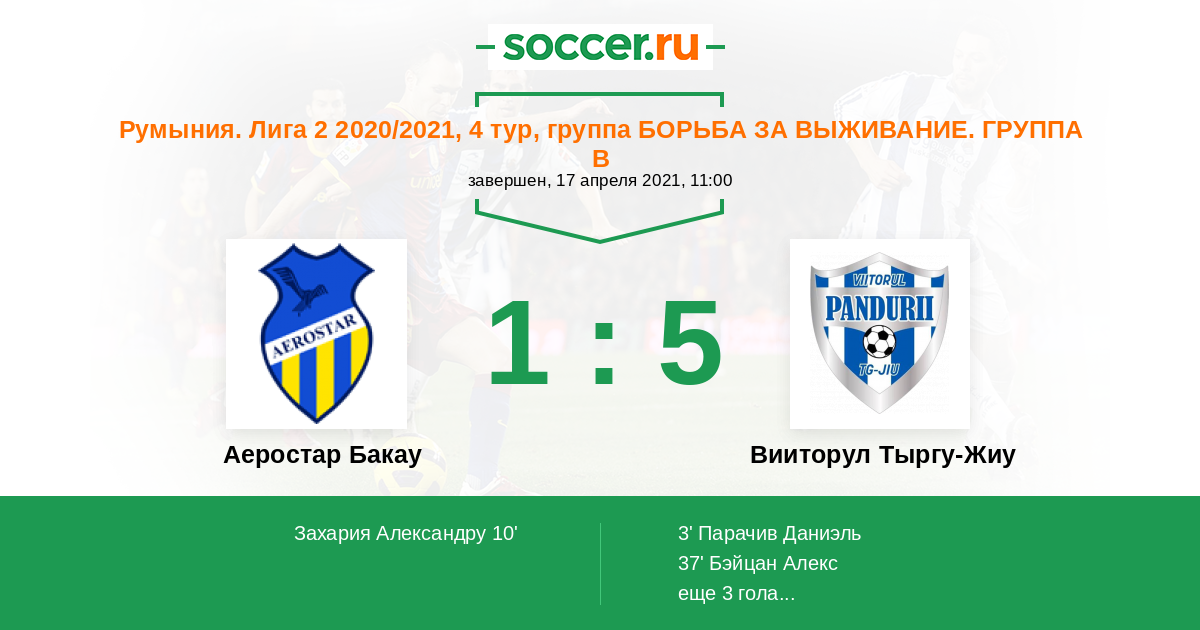 | Аеростар Бакау | Вииторул Тыргу-Жиу | |