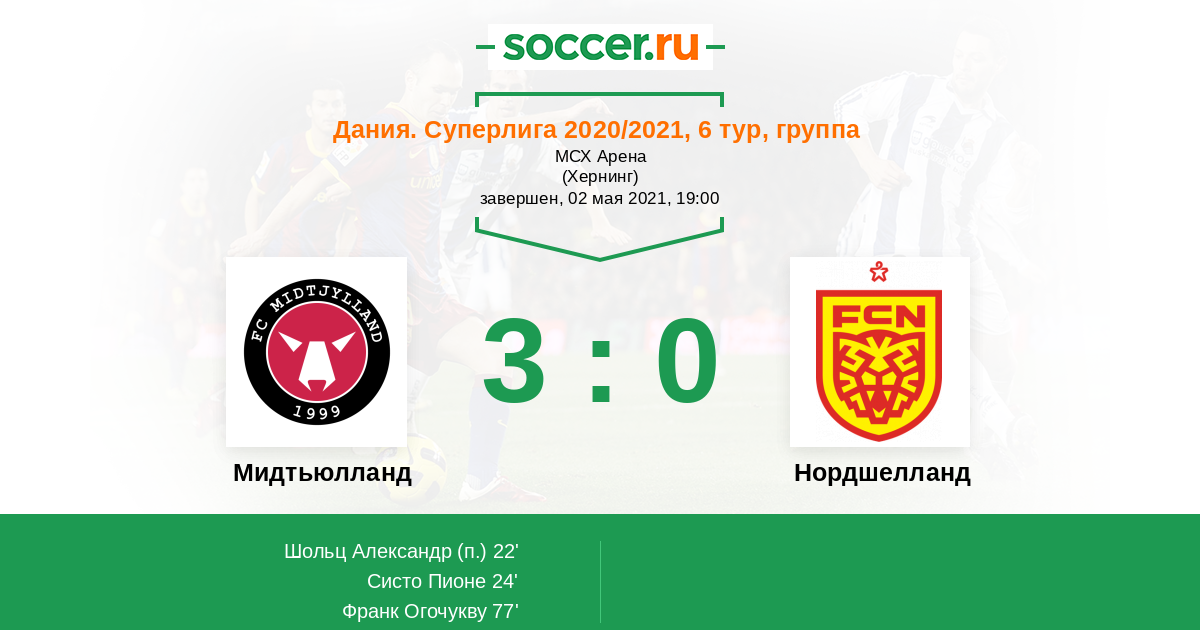 | Мидтьюлланд | 131:87 | 80:36 | 51:51 |