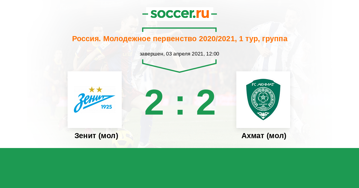 | Зенит (мол) | Ахмат (мол) | |