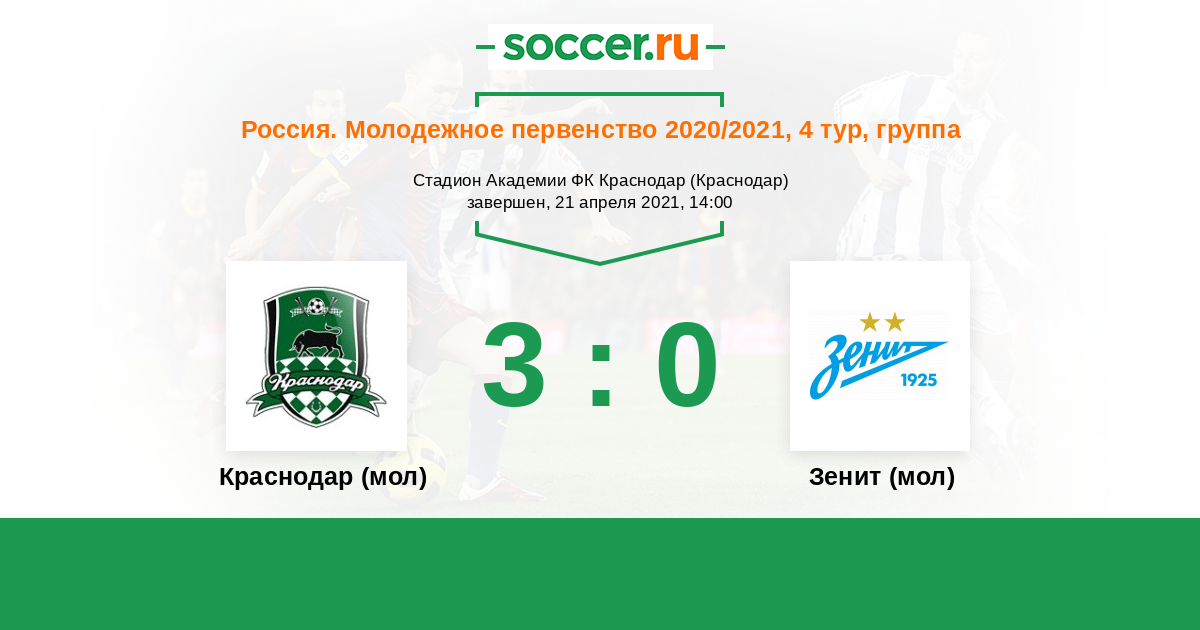 | Краснодар (мол) | Зенит (мол) | |