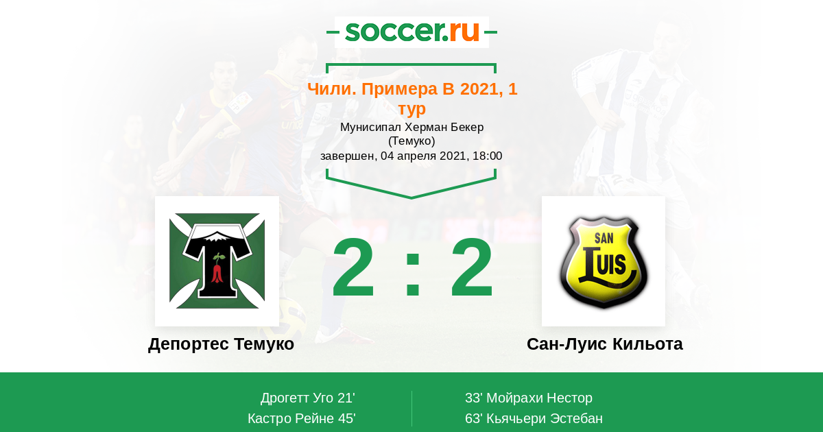 | Депортес Темуко | Сан-Луис Кильота | |