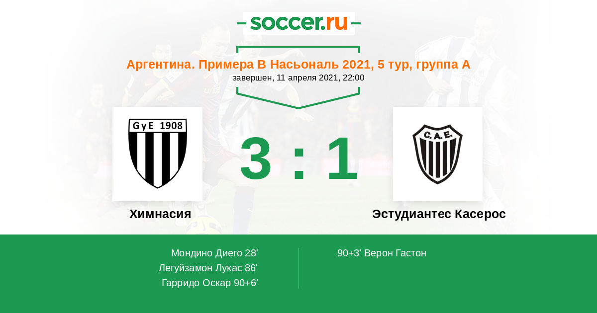 | Эстудиантес Касерос | 3:3 | 1:0 | 2:3 |