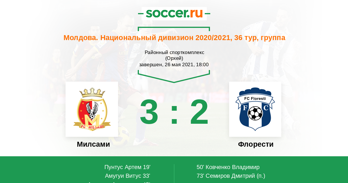 | Флорести | 5:40 | 3:20 | 2:20 |