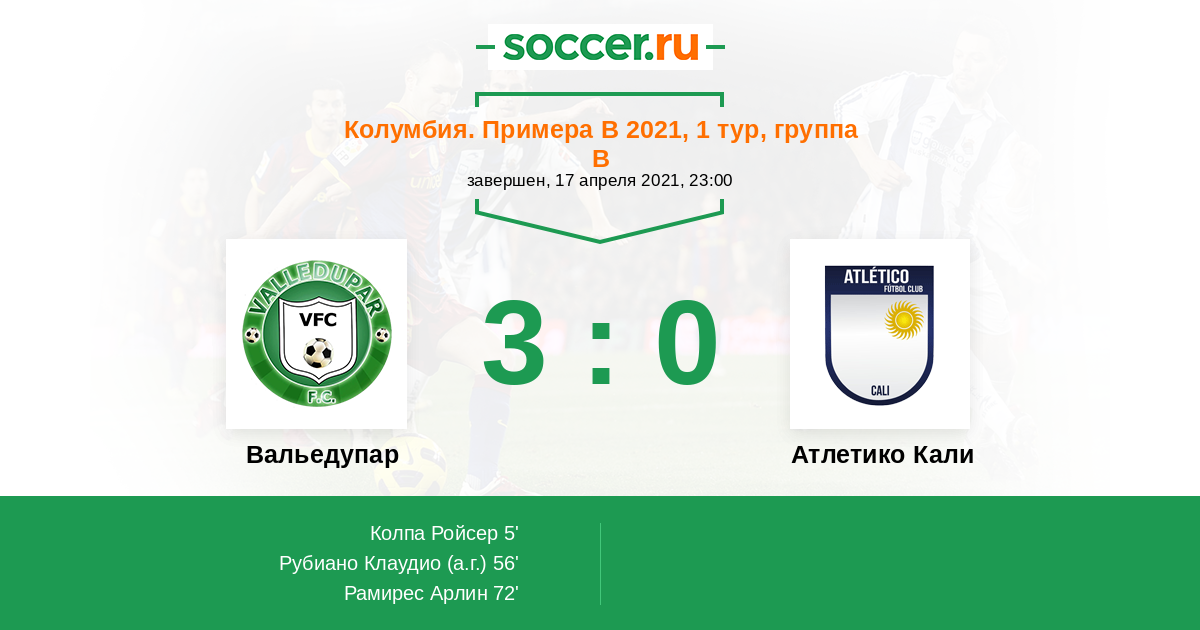 | Вальедупар | 42:33 | 30:10 | 12:23 |