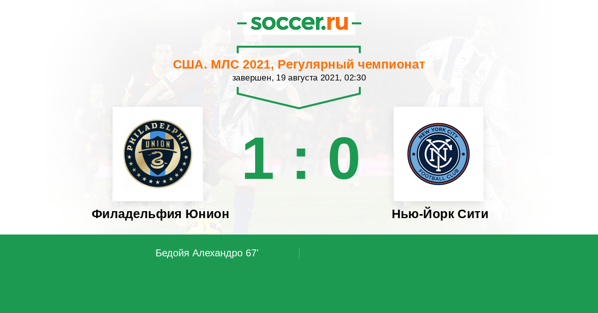 | Филадельфия Юнион | 42:38 | 18:17 | 24:21 |