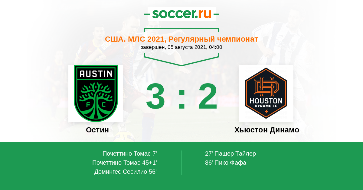 | Хьюстон Динамо | 18:17 | 13:6 | 5:11 |