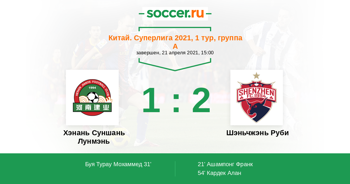 | Китай. Лига Один | 2 | 1 | 1 | 0 |