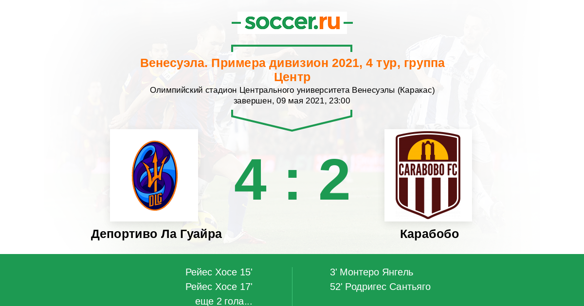 | Карабобо | 41:38 | 28:22 | 13:16 |