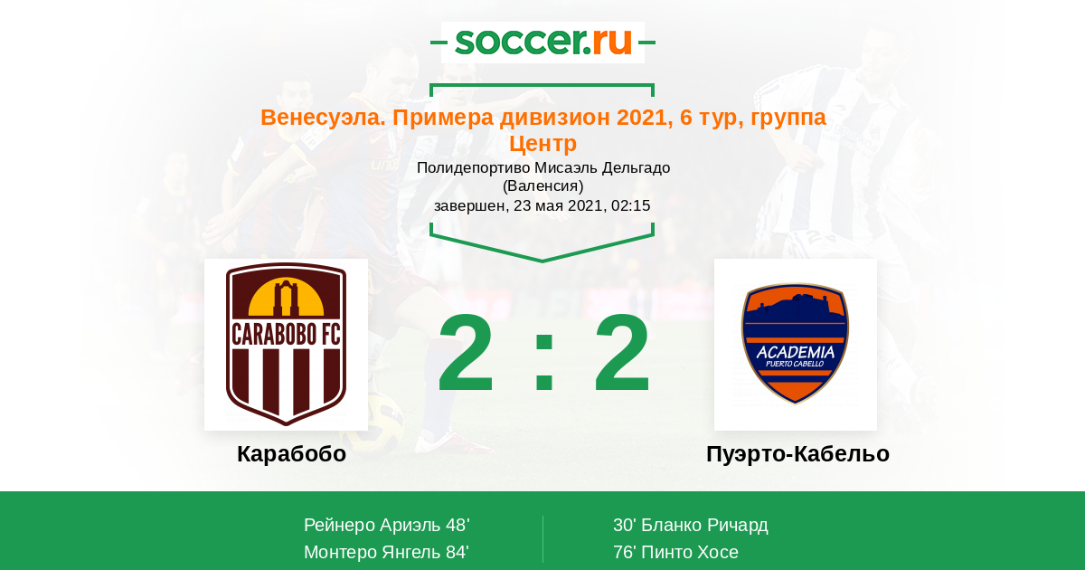 | Карабобо | 26:25 | 11:11 | 15:14 |