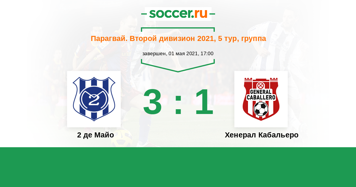 | Хенерал Кабальеро | 21:16 | 12:7 | 9:9 |